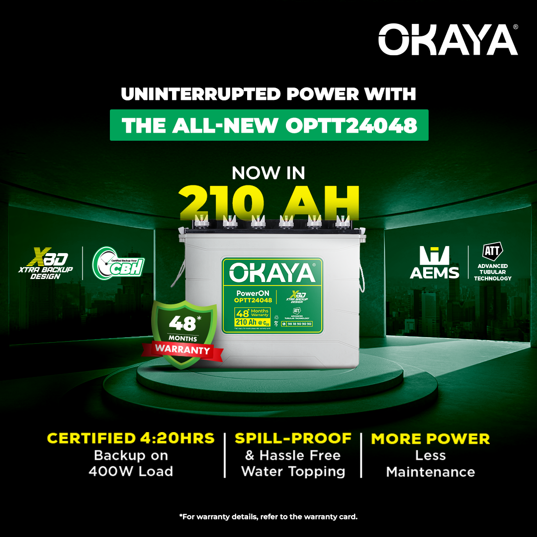 Introducing OKAYA's All-New Advanced Tall Tubular - PowerON OPTT24048 210Ah Inverter Battery with XBD Technology, CBH Declaration and Advanced features for Home, Office & Shops.