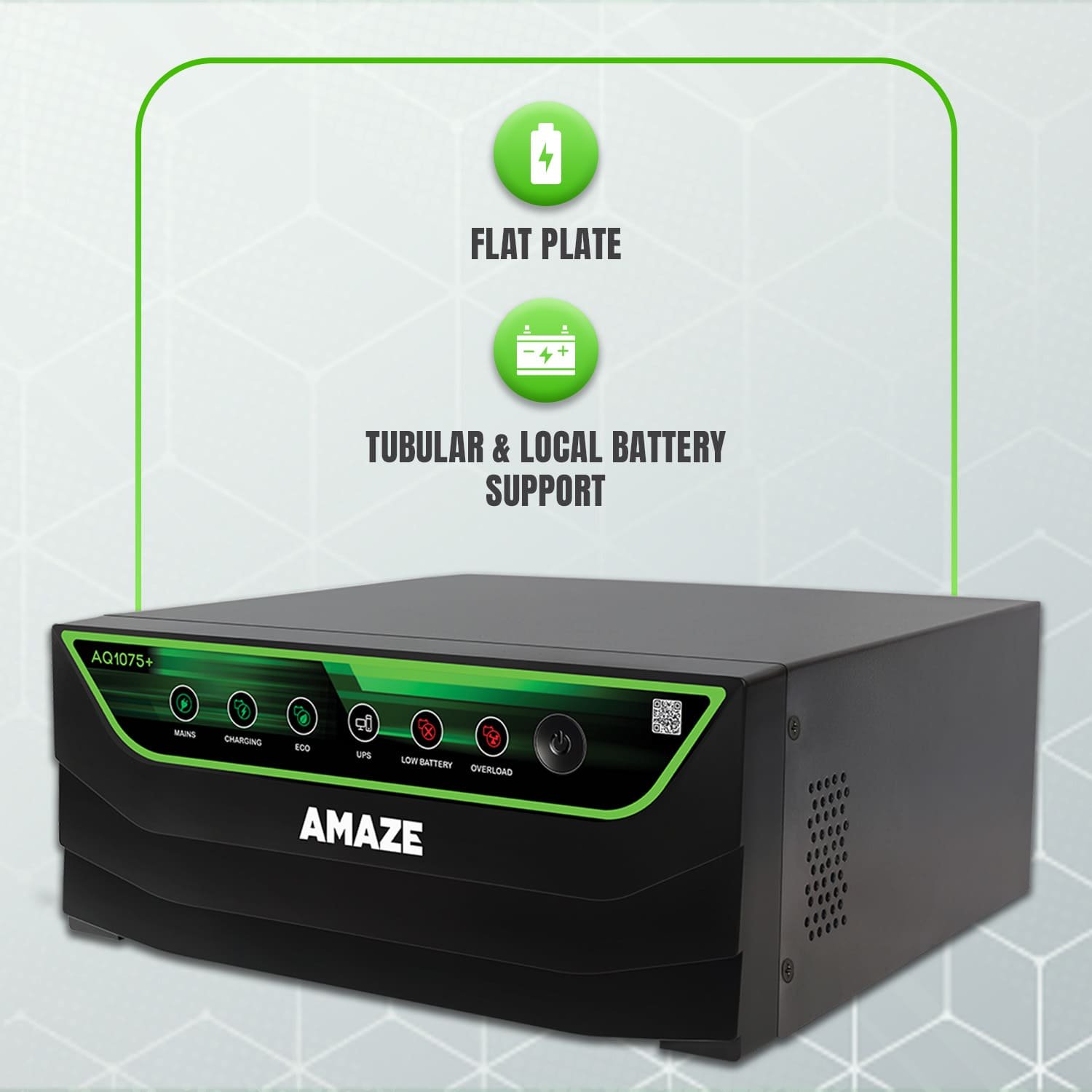 The Inverter Promises you the best working of your basic load easily upto 756W. It offers faster battery charging and efficiently keeps your system ready for the next power cut VA Rating 900VA / 12V Square Wave Inverter Supports single battery Compatible with Tubular, flat plate & SMF batteries Application Area - Home, Office & Small Commercial establishment Running Appliances - Fans, Laptops, LED TV, Lights, Personal computer