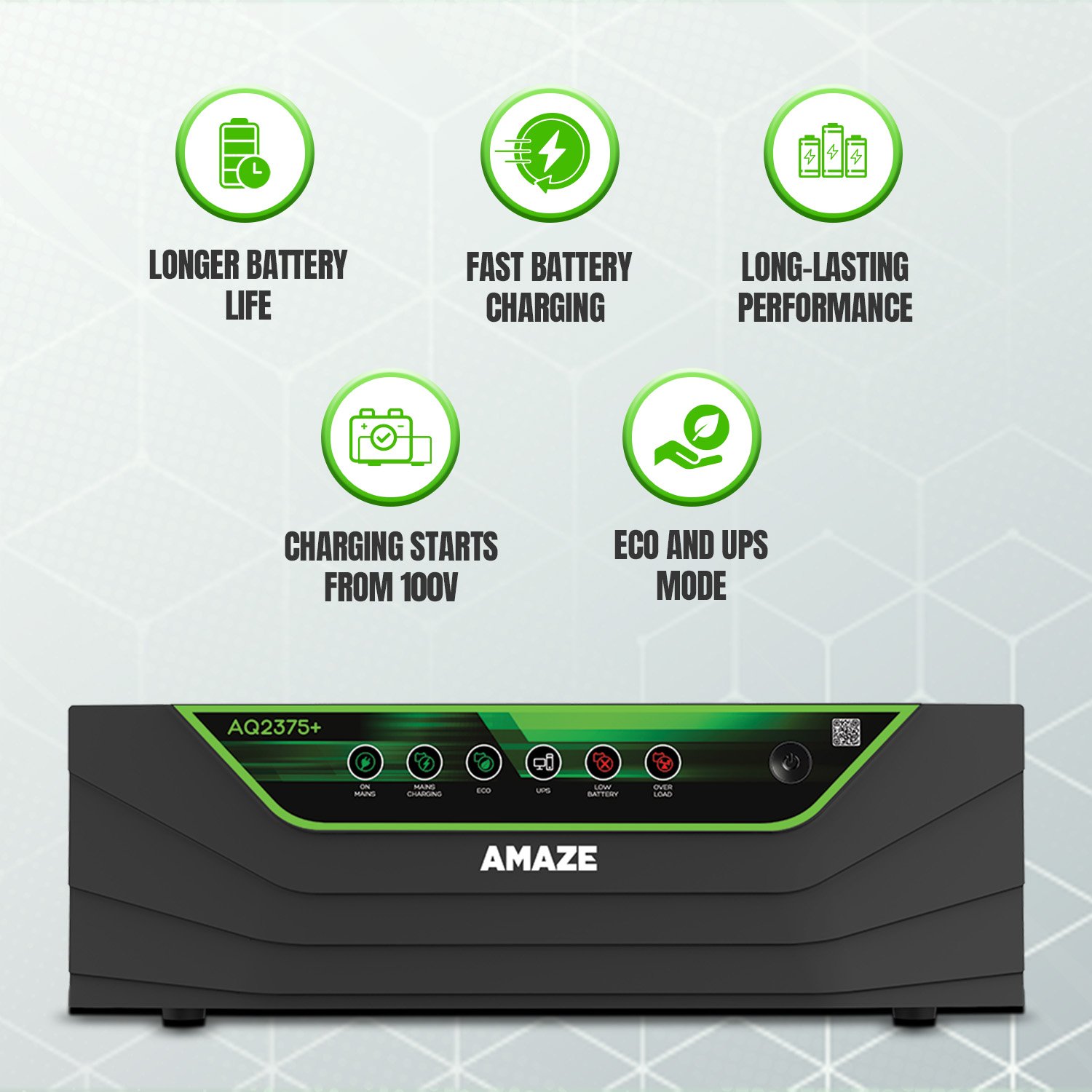 A Digital Power backup solution which is Intelligent, flexible and feature rich. An premium inverter with LCD screen that shows real time information to monitor inverter battery performance statistics and offers flexibility to choose output voltage, charging current and battery type. A fast battery charger at low input voltages VA Rating 2000VA / 24V Rated Power : 1600W Supports double battery Compatible with Tubular, flat plate & SMF batteries Application Area - Home, Office & Small Commercial establishment Running Appliances - Fans, Refrigerator, Mixer Grinder Laptops, LED TV, Lights, Personal computer