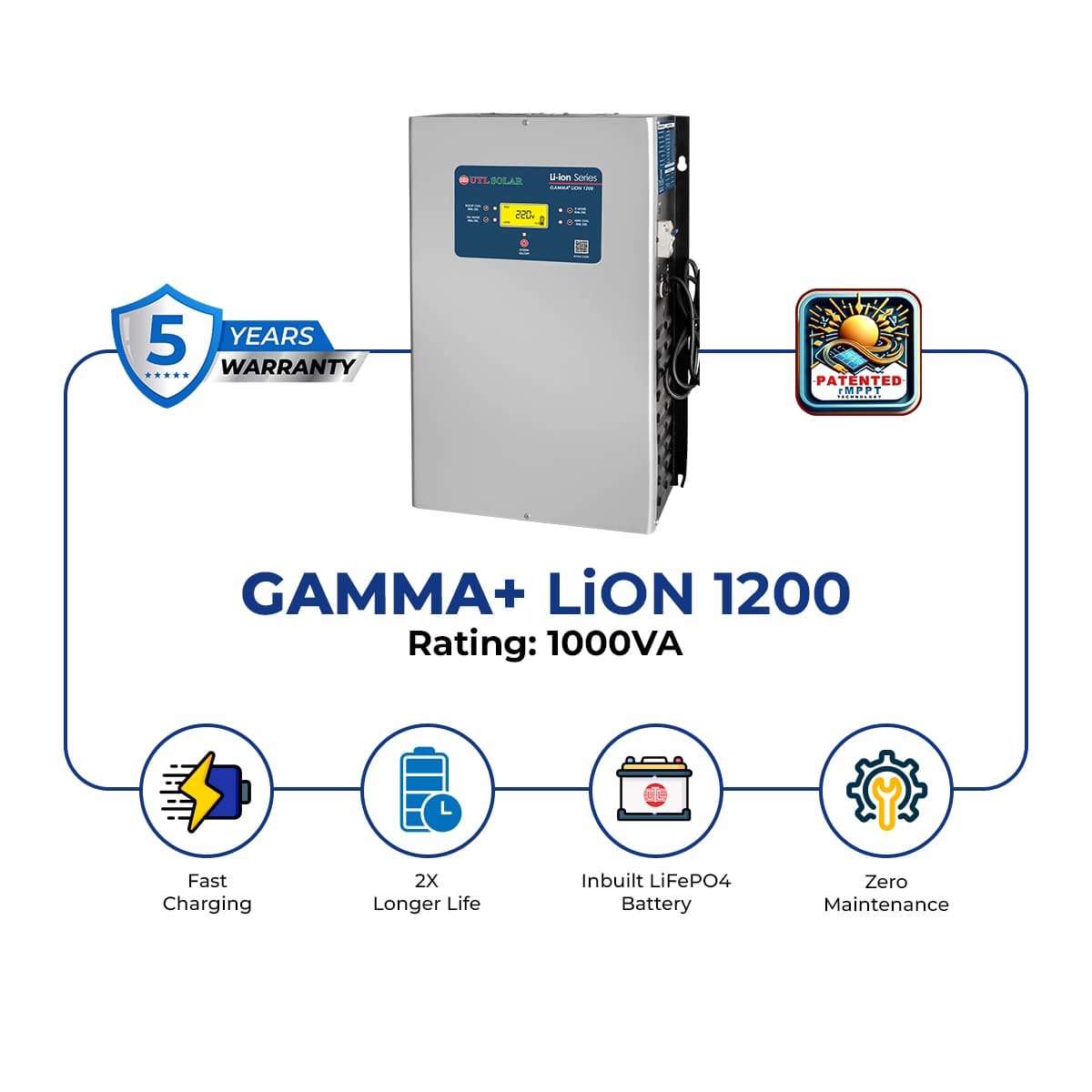 Off-grid solar inverters with inbuilt lithium-ion batteries are compact, all-in-one energy solutions ideal for areas without reliable grid power. UTL solar offers 2 models of lithium integrated inverters(Gamma+ LiON 1200 and SUN LION 1000). They are designedspecifically for small homes, shops, and low-load appliances. It features fast charging, longer battery life, and zero maintenance—thanks to their sealed lithium battery design that eliminates acid fumes and the need for separate battery storage. These plug-and-play inverters are space-saving, easy to install, and perfectly suited for both off-grid living and backup power needs.